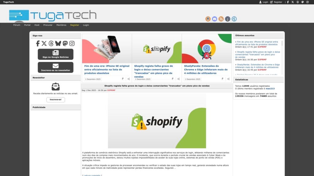 Descrição do site: O site TugaTech se configura como um portal português de tecnologia e informática que combina notícias atuais, análises, tutoriais e debates sobre tendências em TI, internet, hardware, software e inovação de forma acessível. Ele oferece atualizações frequentes — desde novidades em tecnologia e ciência até segurança digital e mercado de TI — atendendo a um público interessado tanto em tecnologia de consumo quanto em temas técnicos mais aprofundados. Além de conteúdo jornalístico, TugaTech mantém uma comunidade ativa onde usuários podem discutir tópicos, partilhar dúvidas e contribuir com conhecimento, o que reforça seu caráter colaborativo. O site também disponibiliza recursos como fóruns, possibilidade de registro e acesso a histórico de debates, o que o aproxima de um hub para entusiastas e profissionais da área. Via seu braço de serviços, o portal chega a oferecer hospedagem web e soluções de hosting — o que amplia sua atuação para além de simples portal de notícias. A política de privacidade do TugaTech indica cuidado com dados dos usuários, informando consentimento e opções de gerenciamento de cookies e dados pessoais. Por fim, a proposta editorial e estrutural do TugaTech permite acompanhar de forma integrada notícias, debates técnicos e serviços de infraestrutura digital, tornando-o uma plataforma abrangente para quem se interessa por tecnologia, Internet e web-hosting em âmbito lusófono.