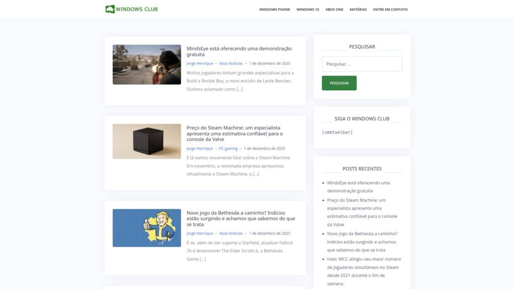 Descrição do site: O site Windows Club é um portal brasileiro dedicado principalmente a notícias, análises e cobertura do universo de tecnologia voltado aos produtos e sistemas da Microsoft — como Windows, Xbox, Office, aplicativos e afins. Ele costuma trazer artigos sobre atualizações de softwares, lançamentos, jogos, reviews e dicas técnicas, atendendo tanto a fãs quanto a usuários que buscam se manter informados. O site já existia desde os tempos de Windows Phone e, ao longo dos anos, adaptou seu foco para acompanhar a evolução das plataformas Microsoft, incluindo Windows para PC e consoles Xbox. A proposta do Windows Club parece ser criar uma comunidade de entusiastas — oferecendo conteúdo atualizado e relevante, com linguagem relativamente acessível, mas com bom conhecimento técnico por trás. Com uma base de usuários fiéis e histórico de décadas, ele funciona como ponto de referência no Brasil para quem quer acompanhar novidades, análises críticas ou soluções dentro do ecossistema Microsoft.